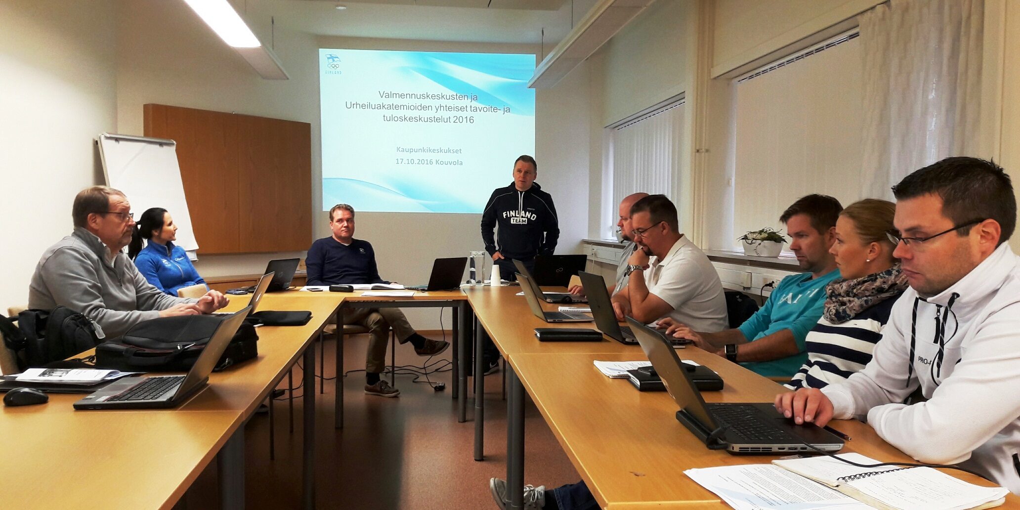 Olympiakomitean huippu-urheiluyksikön akatemiaohjelman johtaja Simo Tarvonen, valmennuspäällikkö Antti Paananen ja valmennusosaamisen kehittäjä Pia Pekonen vierailivat Kouvolassa ma 17.10. Vierailun tarkoituksena oli rakentaa yhteistä toimintasuunnitelmaa Olympiakomitean akatemiaohjelman ja kaupunkikeskusakatemioiden välille. Kaikki Suomen kaupunkikeskusakatemiat olivat edustettuina eli Kouvolan Urheiluakatemia, Etelä-Karjalan urheiluakatemia, Etelä-Kymenlaakson urheiluakatemia, Etelä-Savon urheiluakatemia, Forssan urheiluakatemia, Kokkolan urheiluakatemia ja Urheiluakatemia Tavastia. (Hämeenlinna)